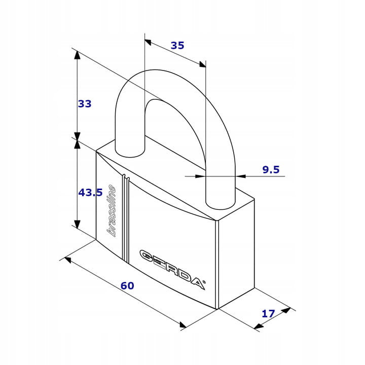 Kłódka mosiężna Gerda KMZ S60, przeznaczona do ogólnych zastosowań. Kłódki z tej rodziny znajdują najczęstsze zastosowania przy współpracy z łańcuchami, drzwiami na skoble, bramami, szlabanami, komórkami, skrzyniami na narzędzia i wieloma innymi - oczywiście zawsze należy dobrać odpowiednią wielkość kłódki. Odporna na warunki atmosferyczne, pałąk ze stali hartowanej utrudnia jej pokonanie przez przecięcie.